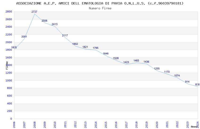 | Anno | Firme | Importi | Media | Naz. | Reg. | Prov. | Comu. |