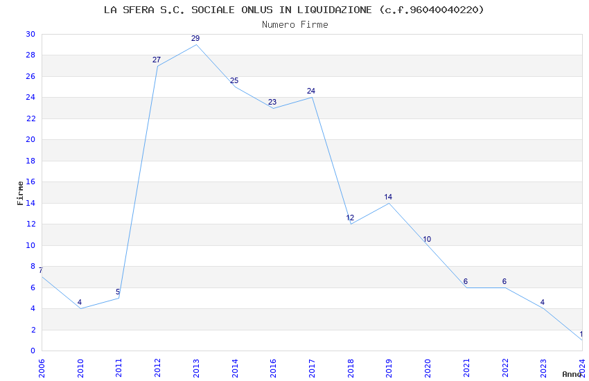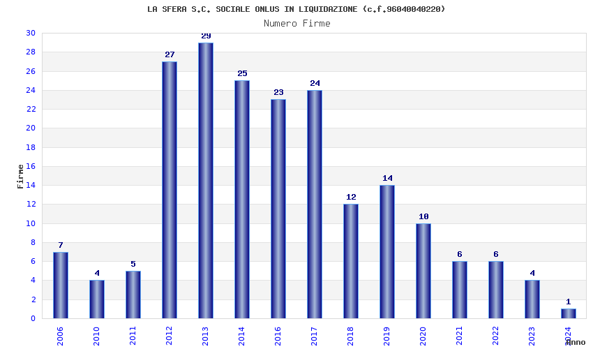 | Anno | Firme | Importi | Media | Naz. | Reg. | Prov. | Comu. |