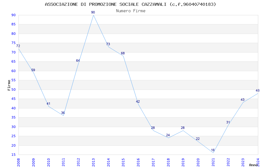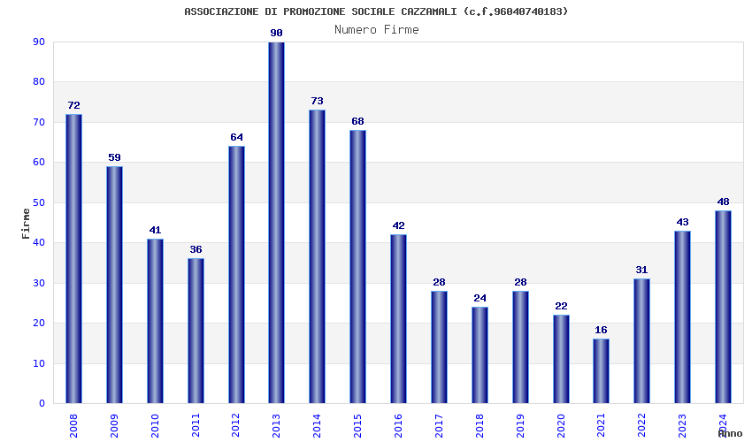 | Anno | Firme | Importi | Media | Naz. | Reg. | Prov. | Comu. |