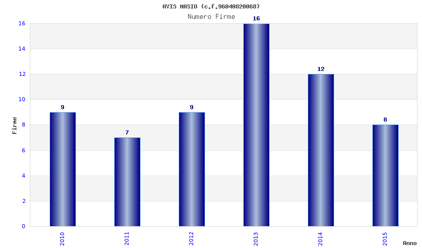 Anno Firme Importi Media Naz. Reg. Prov. Comu.