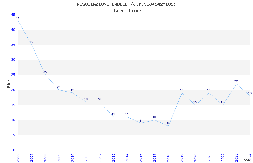 | 2006 | 43 | 1.940,88 | 45,14 | 15.245 | 3.944 | 182 | 54 |