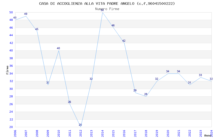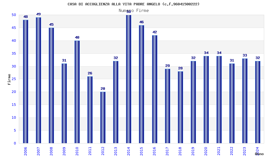 | Anno | Firme | Importi | Media | Naz. | Reg. | Prov. | Comu. |