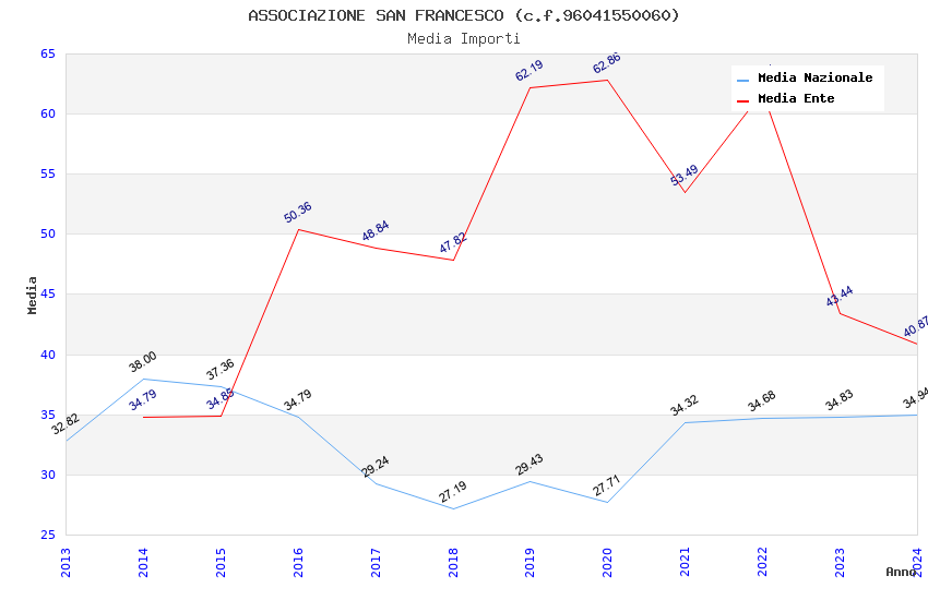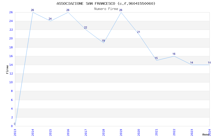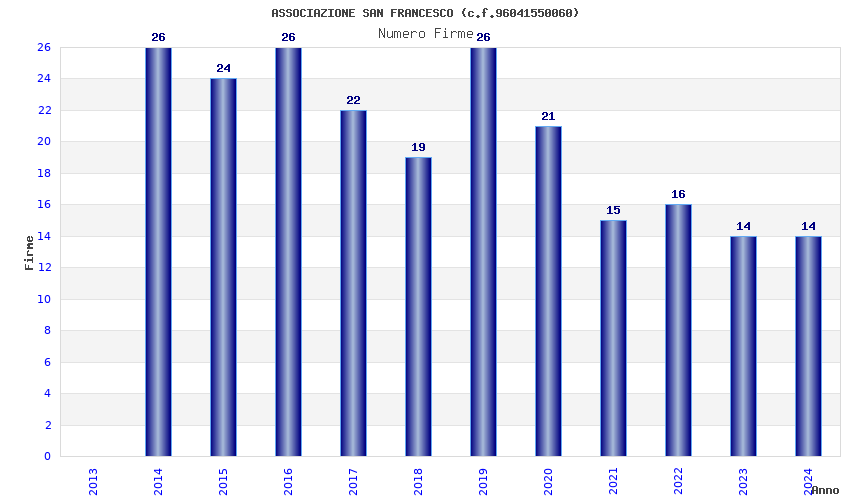 | Anno | Firme | Importi | Media | Naz. | Reg. | Prov. | Comu. |