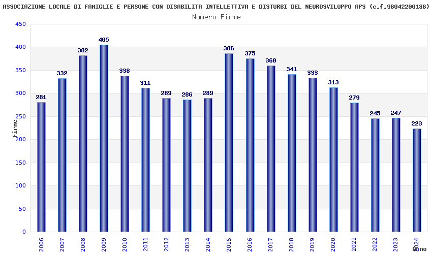 | Anno | Firme | Importi | Media | Naz. | Reg. | Prov. | Comu. |