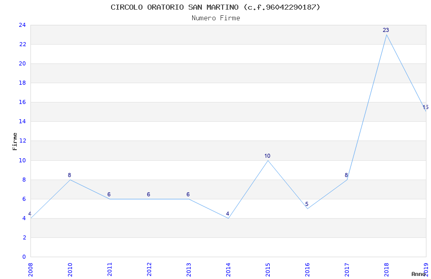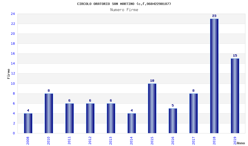 | Anno | Firme | Importi | Media | Naz. | Reg. | Prov. | Comu. |