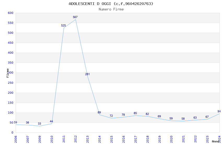 | 2012 | 567 | 5.925,92 | 10,45 | 7.399 | 38 | 25 | 11 |