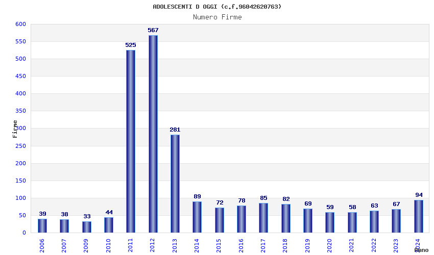 | Anno | Firme | Importi | Media | Naz. | Reg. | Prov. | Comu. |
