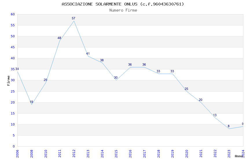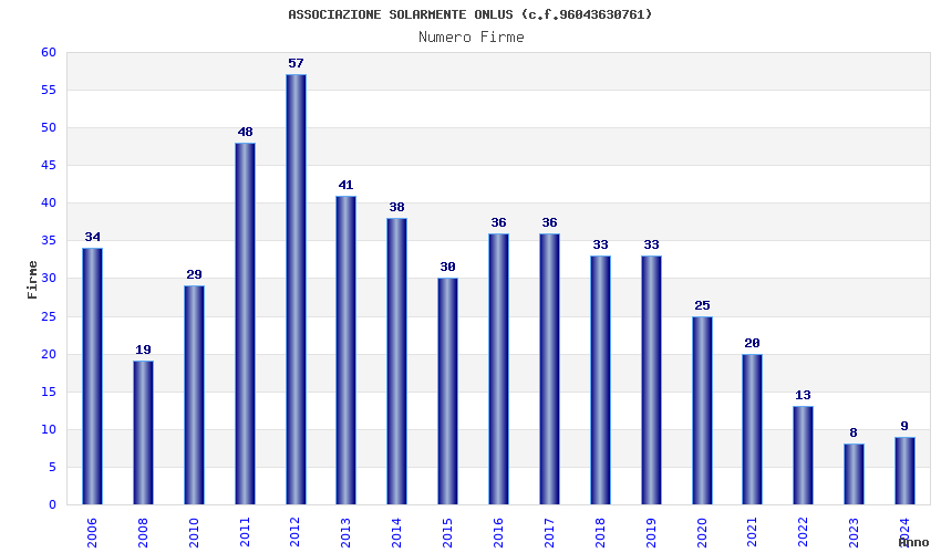 | Anno | Firme | Importi | Media | Naz. | Reg. | Prov. | Comu. |