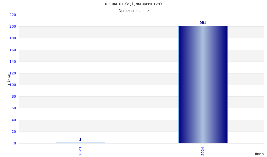 | Anno | Firme | Importi | Media | Naz. | Reg. | Prov. | Comu. |