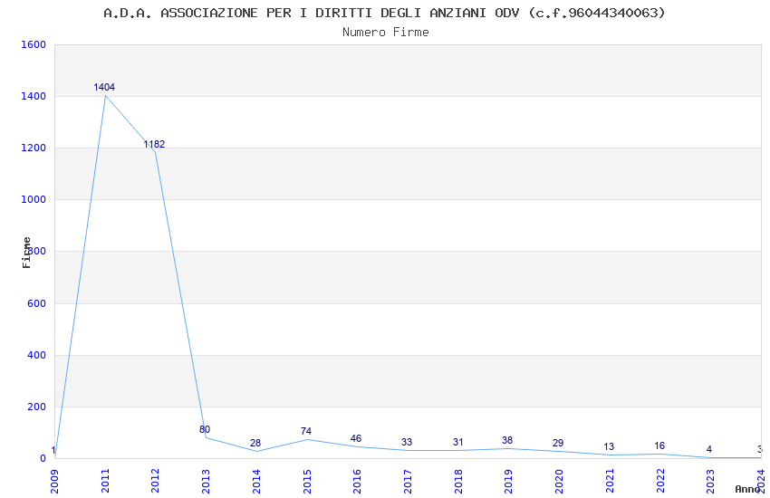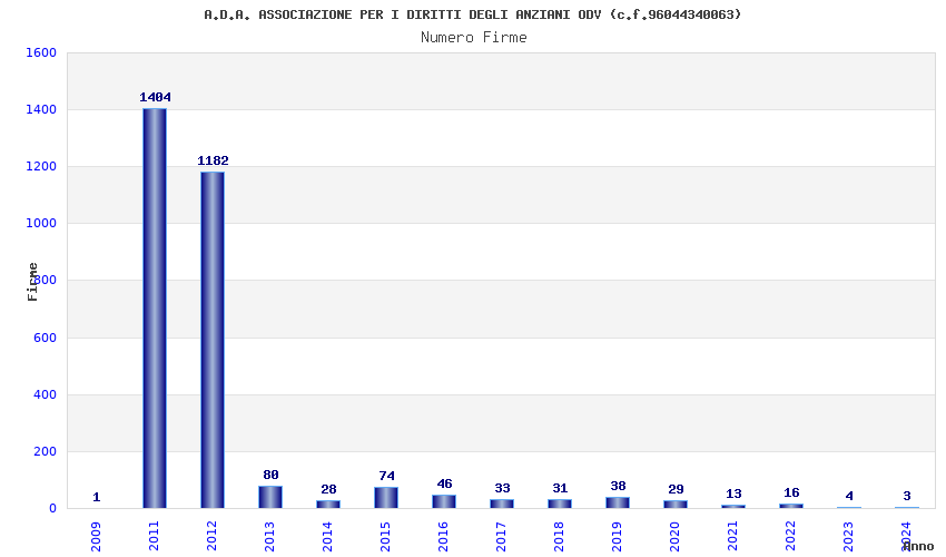 | Anno | Firme | Importi | Media | Naz. | Reg. | Prov. | Comu. |