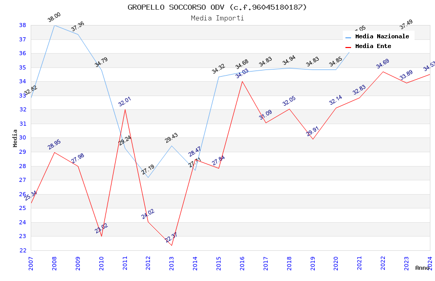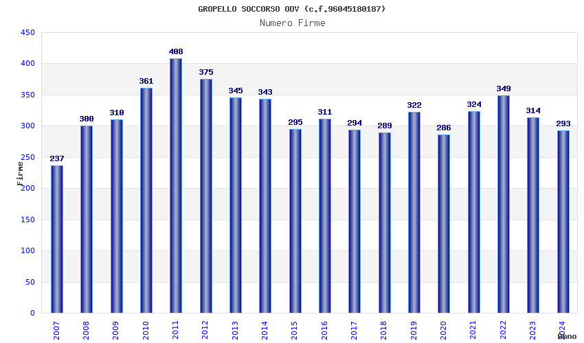 | Anno | Firme | Importi | Media | Naz. | Reg. | Prov. | Comu. |