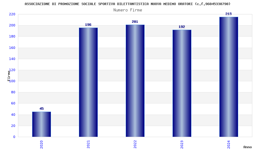 | Anno | Firme | Importi | Media | Naz. | Reg. | Prov. | Comu. |