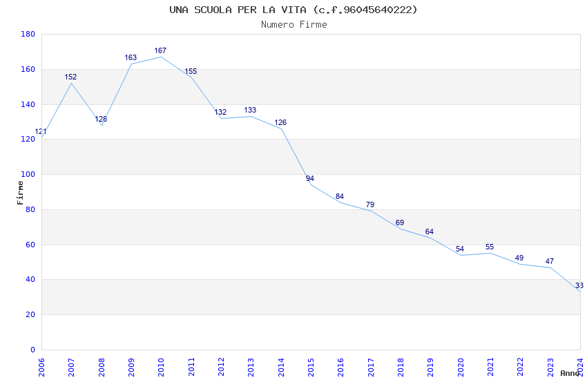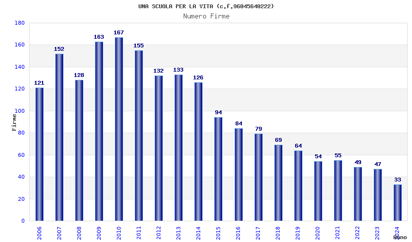 | Anno | Firme | Importi | Media | Naz. | Reg. | Prov. | Comu. |