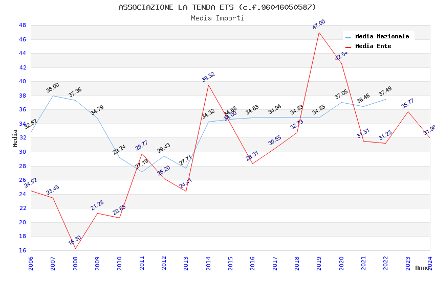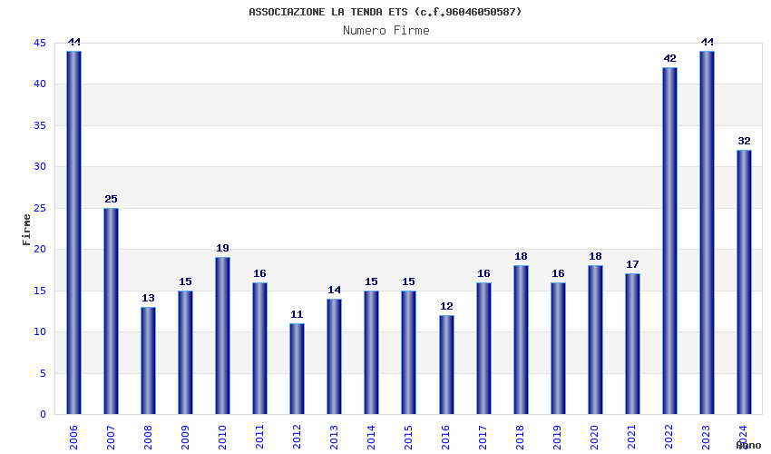 | Anno | Firme | Importi | Media | Naz. | Reg. | Prov. | Comu. |