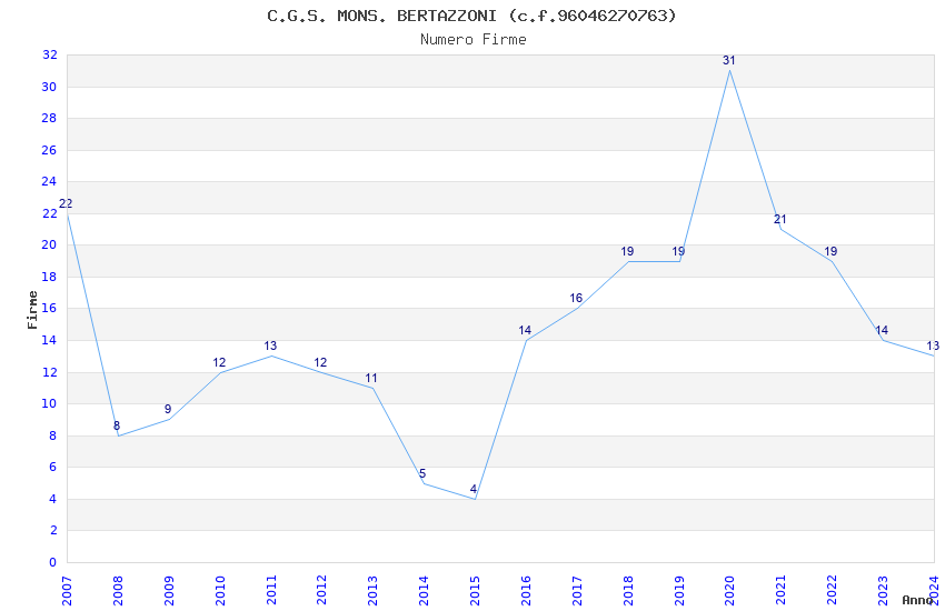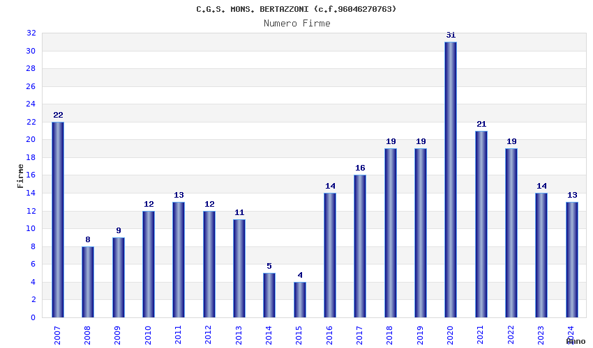 | Anno | Firme | Importi | Media | Naz. | Reg. | Prov. | Comu. |