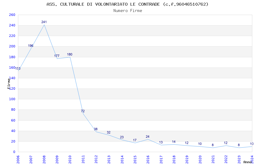 | 2010 | 180 | 2.714,76 | 15,08 | 13.559 | 91 | 62 | 2 |