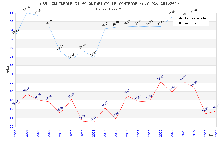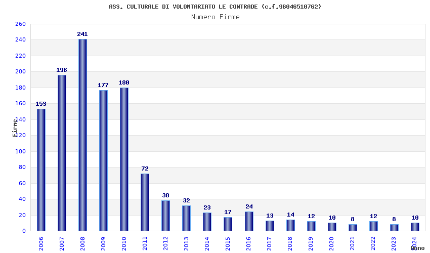 | Anno | Firme | Importi | Media | Naz. | Reg. | Prov. | Comu. |