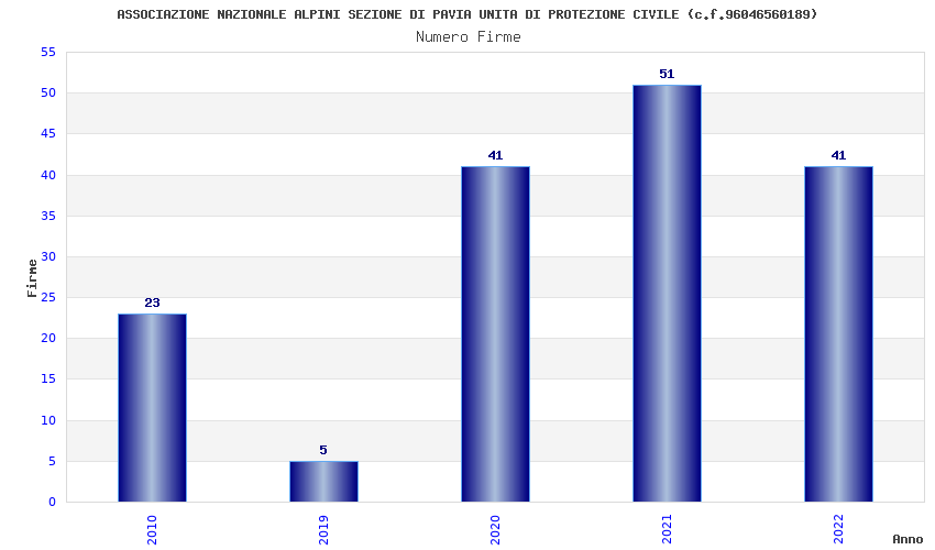 | Anno | Firme | Importi | Media | Naz. | Reg. | Prov. | Comu. |