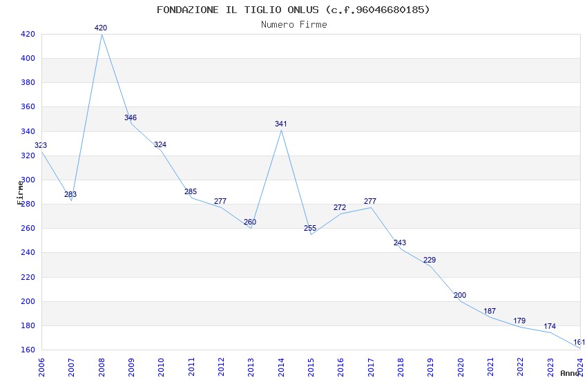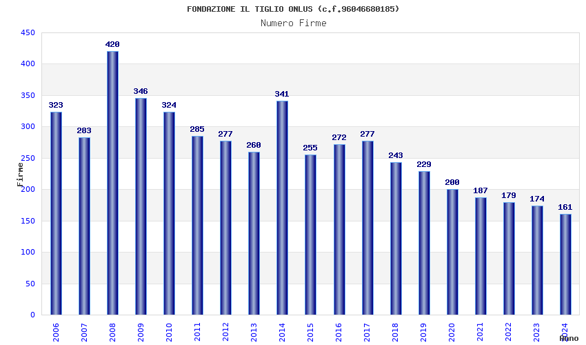 | Anno | Firme | Importi | Media | Naz. | Reg. | Prov. | Comu. |
