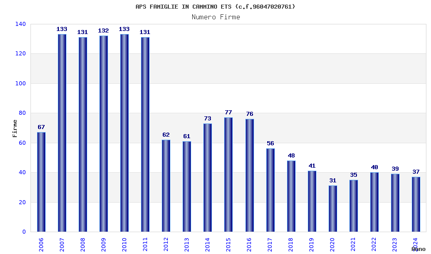 | Anno | Firme | Importi | Media | Naz. | Reg. | Prov. | Comu. |