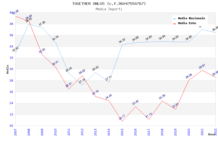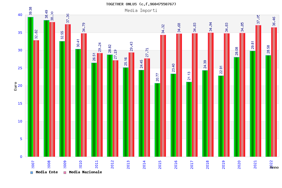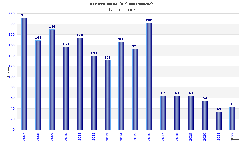 | Anno | Firme | Importi | Media | Naz. | Reg. | Prov. | Comu. |