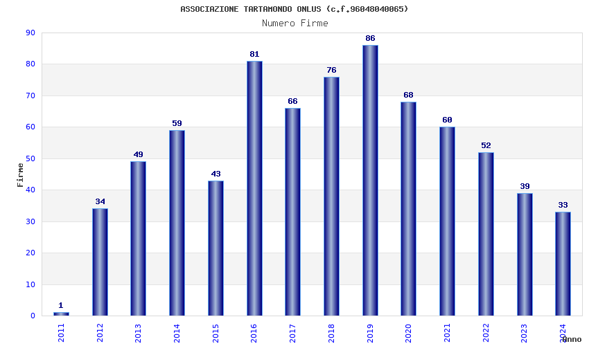 | 2019 | 86 | 2.468,30 | 28,70 | 20.661 | 1.576 | 131 | 1 |