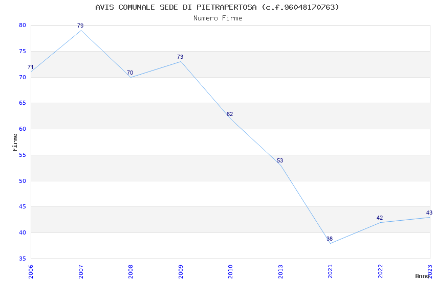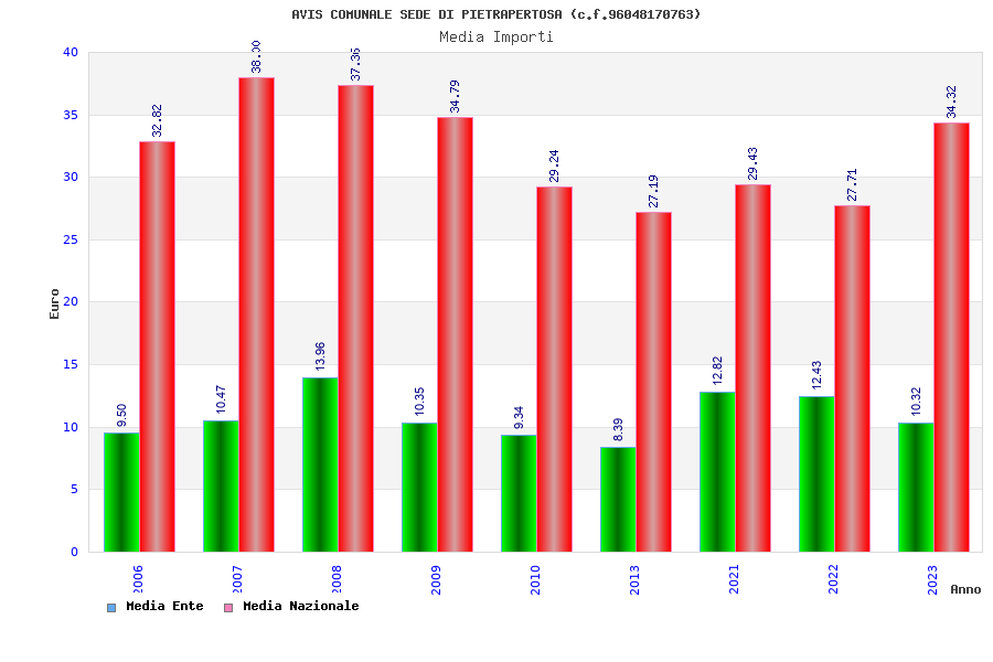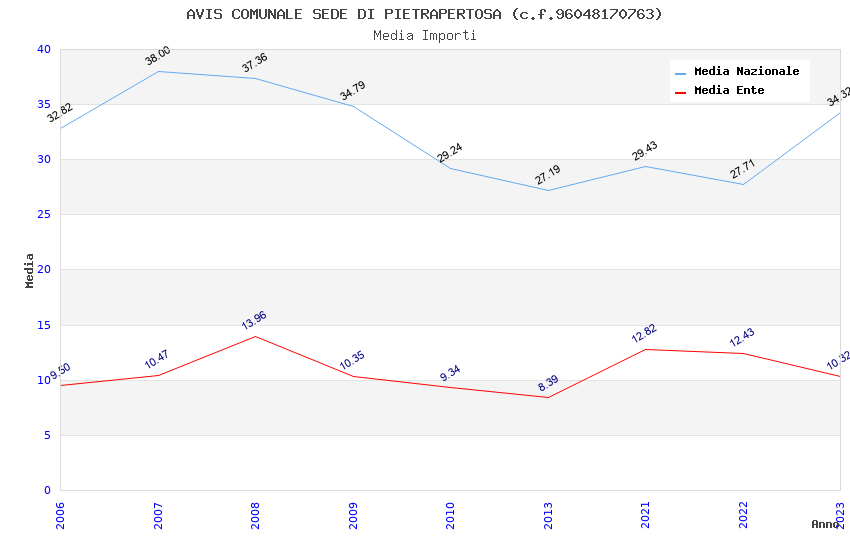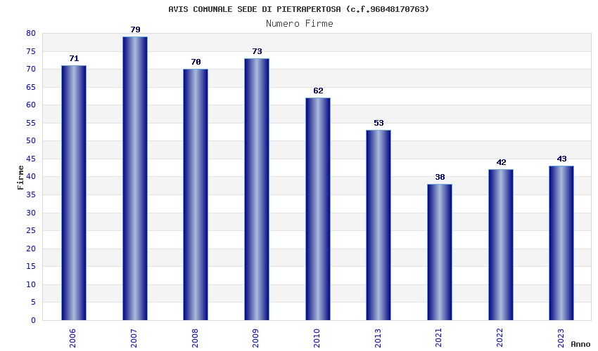 | Anno | Firme | Importi | Media | Naz. | Reg. | Prov. | Comu. |