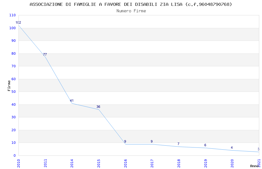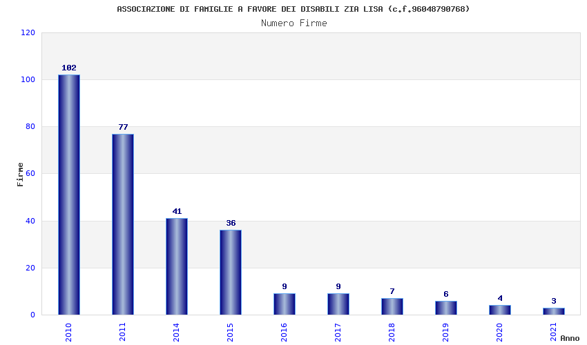 | Anno | Firme | Importi | Media | Naz. | Reg. | Prov. | Comu. |