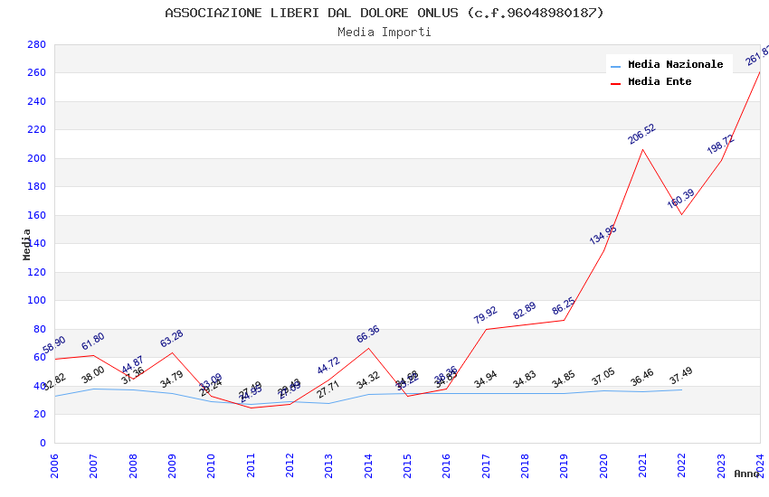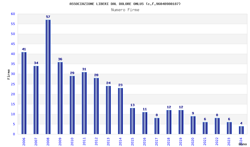 | Anno | Firme | Importi | Media | Naz. | Reg. | Prov. | Comu. |