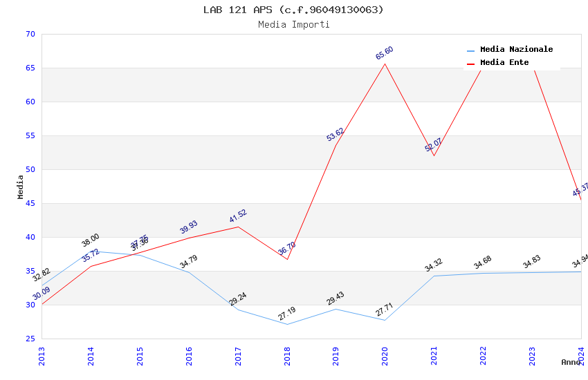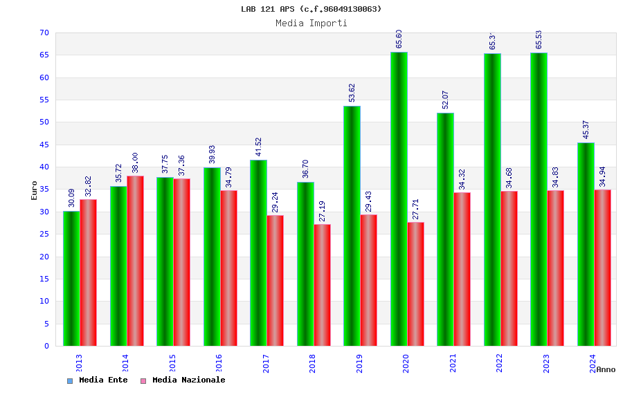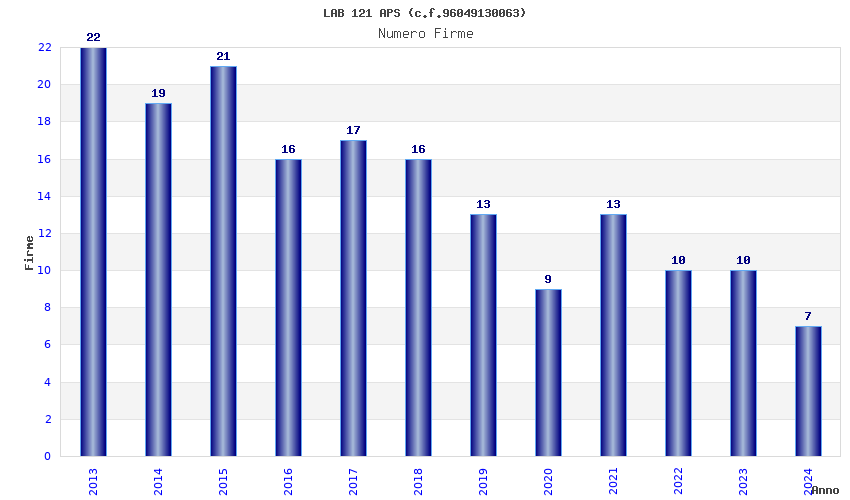 | Anno | Firme | Importi | Media | Naz. | Reg. | Prov. | Comu. |