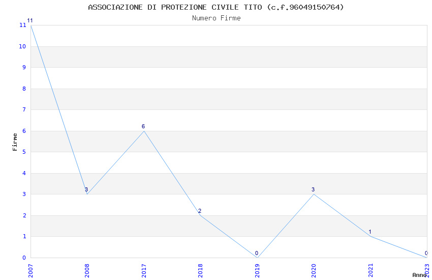 | Anno | Firme | Importi | Media | Naz. | Reg. | Prov. | Comu. |