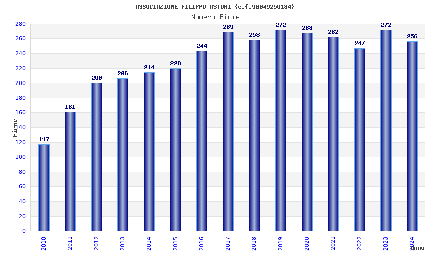 | Anno | Firme | Importi | Media | Naz. | Reg. | Prov. | Comu. |