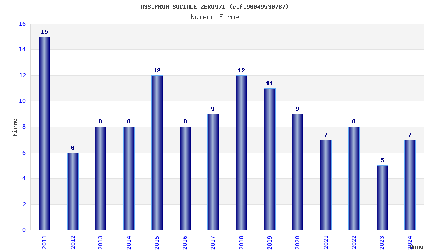 | Anno | Firme | Importi | Media | Naz. | Reg. | Prov. | Comu. |