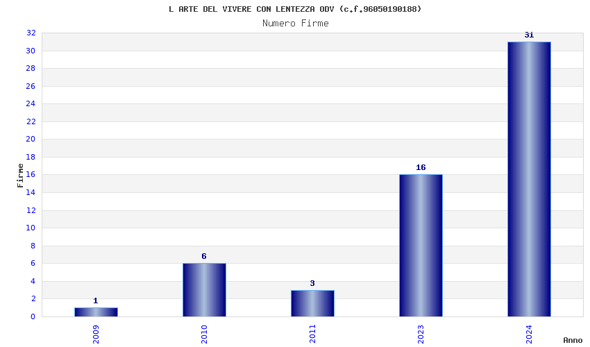 | Anno | Firme | Importi | Media | Naz. | Reg. | Prov. | Comu. |