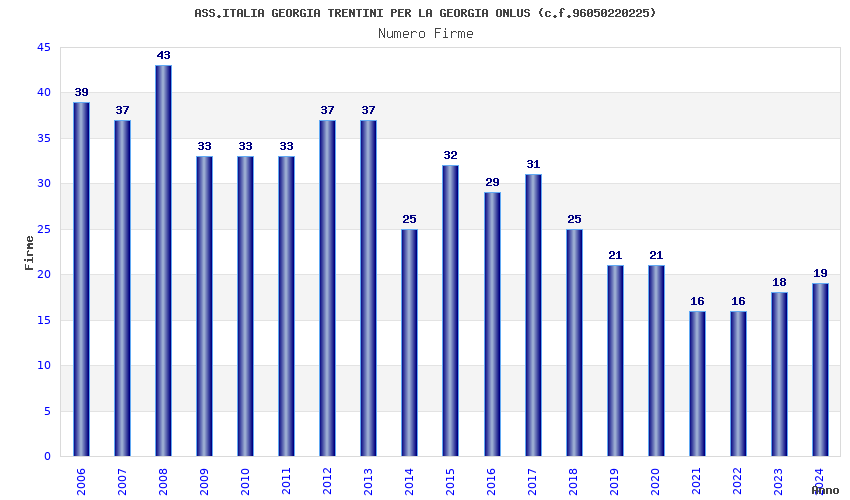 | Anno | Firme | Importi | Media | Naz. | Reg. | Prov. | Comu. |