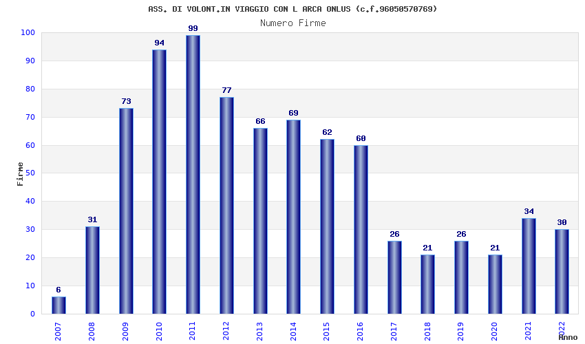 | Anno | Firme | Importi | Media | Naz. | Reg. | Prov. | Comu. |