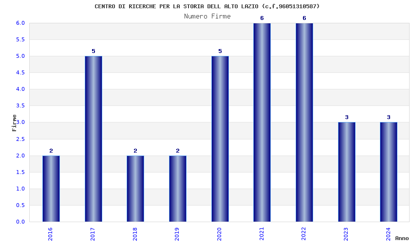 | Anno | Firme | Importi | Media | Naz. | Reg. | Prov. | Comu. |