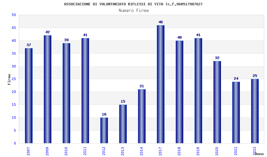 | Anno | Firme | Importi | Media | Naz. | Reg. | Prov. | Comu. |
