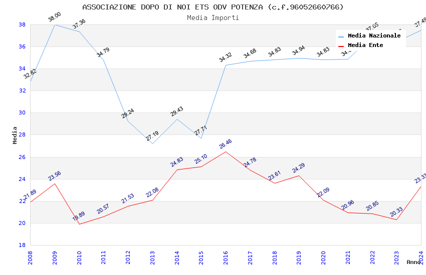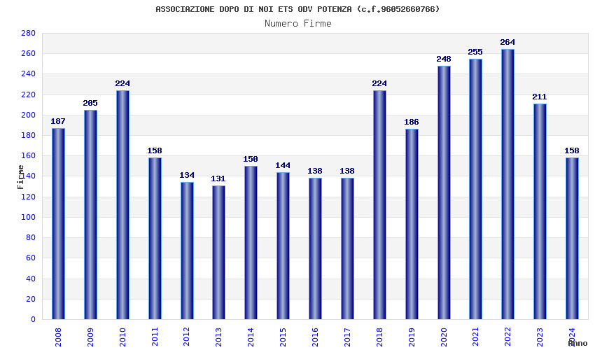 | Anno | Firme | Importi | Media | Naz. | Reg. | Prov. | Comu. |