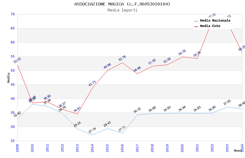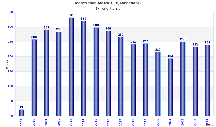 | Anno | Firme | Importi | Media | Naz. | Reg. | Prov. | Comu. |
