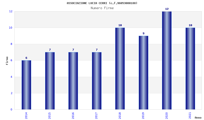 | Anno | Firme | Importi | Media | Naz. | Reg. | Prov. | Comu. |