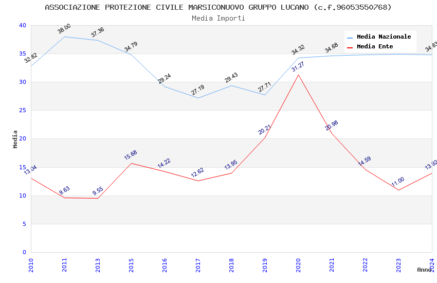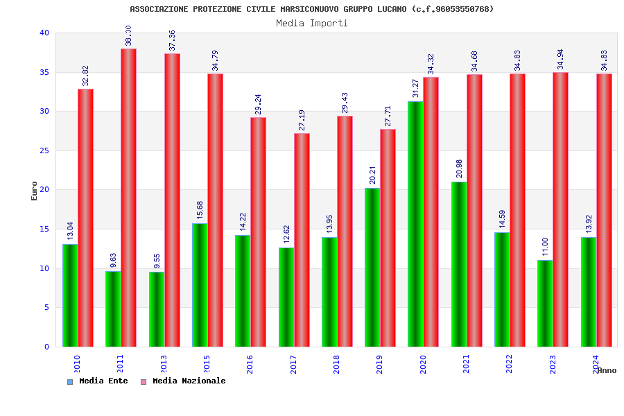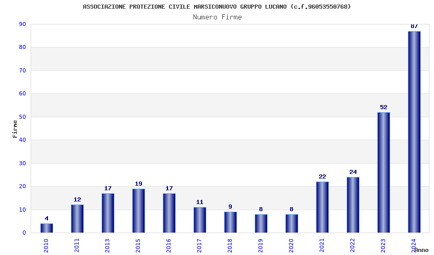 | Anno | Firme | Importi | Media | Naz. | Reg. | Prov. | Comu. |
