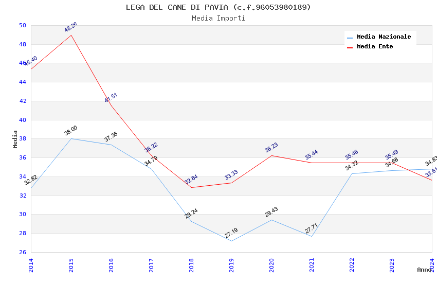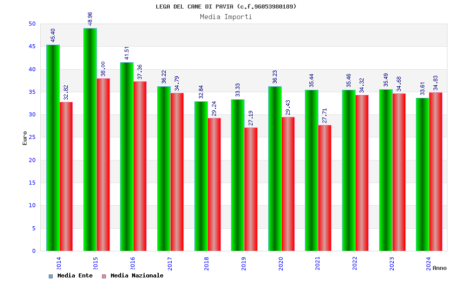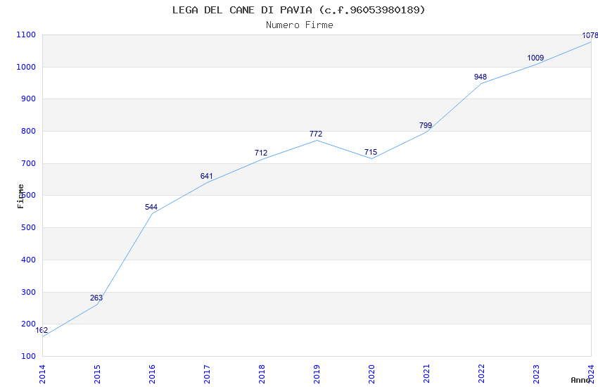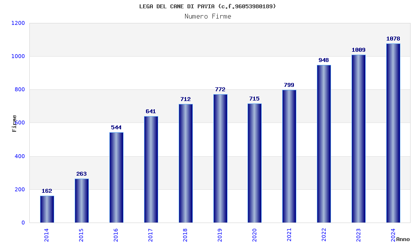 | Anno | Firme | Importi | Media | Naz. | Reg. | Prov. | Comu. |