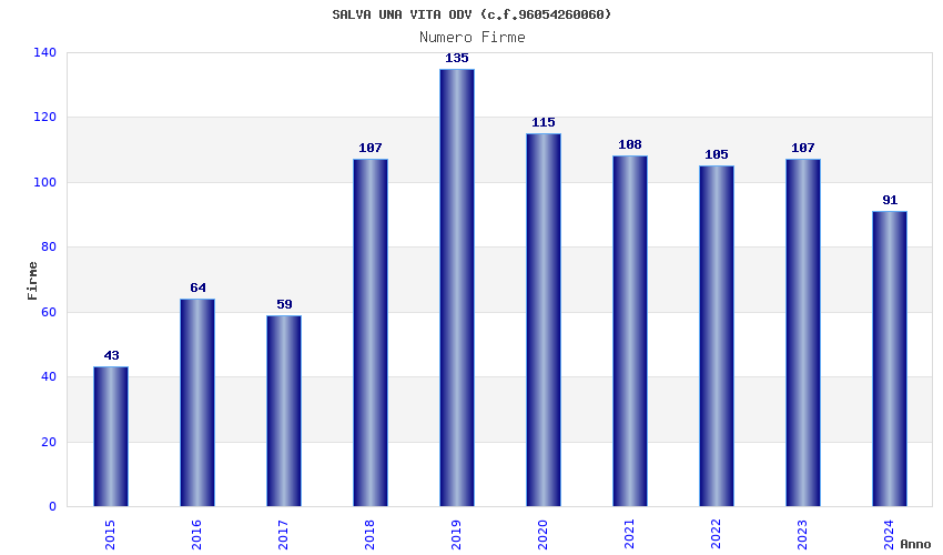 | Anno | Firme | Importi | Media | Naz. | Reg. | Prov. | Comu. |
