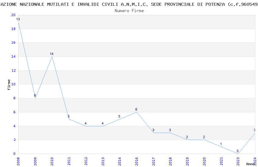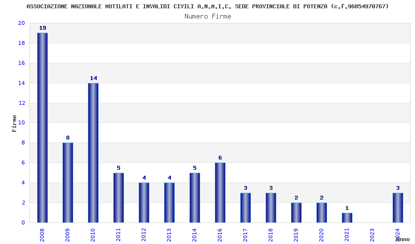 | Anno | Firme | Importi | Media | Naz. | Reg. | Prov. | Comu. |