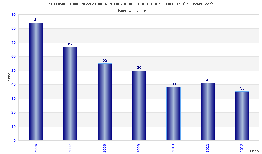 | Anno | Firme | Importi | Media | Naz. | Reg. | Prov. | Comu. |