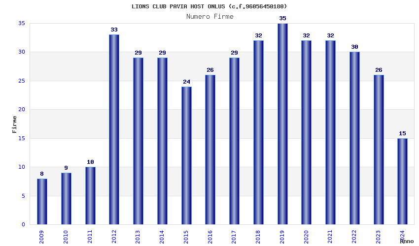 | Anno | Firme | Importi | Media | Naz. | Reg. | Prov. | Comu. |