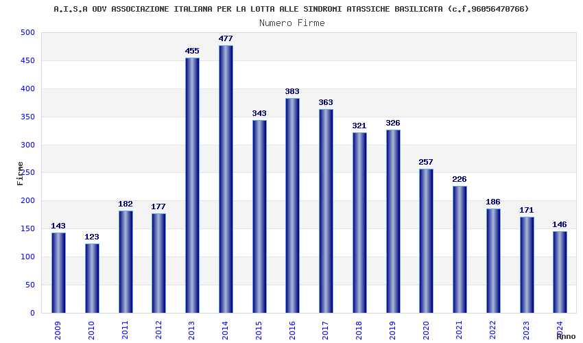| Anno | Firme | Importi | Media | Naz. | Reg. | Prov. | Comu. |