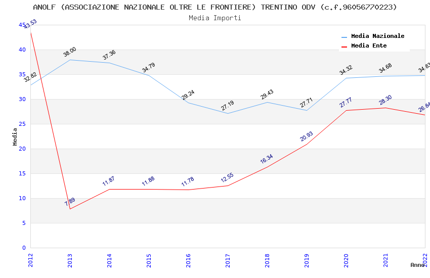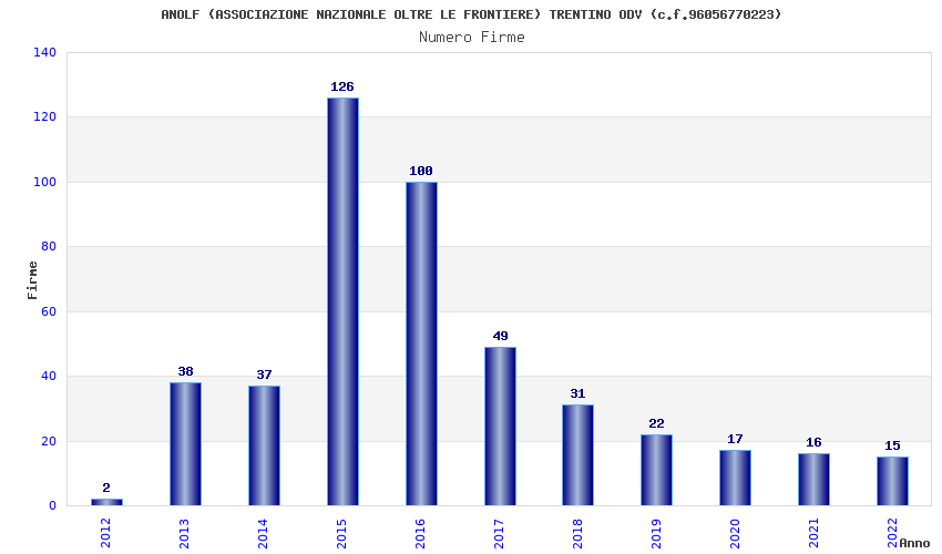 | Anno | Firme | Importi | Media | Naz. | Reg. | Prov. | Comu. |