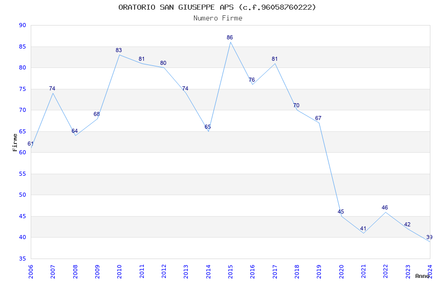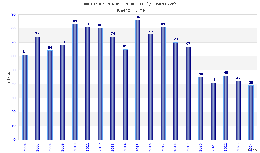 | Anno | Firme | Importi | Media | Naz. | Reg. | Prov. | Comu. |
